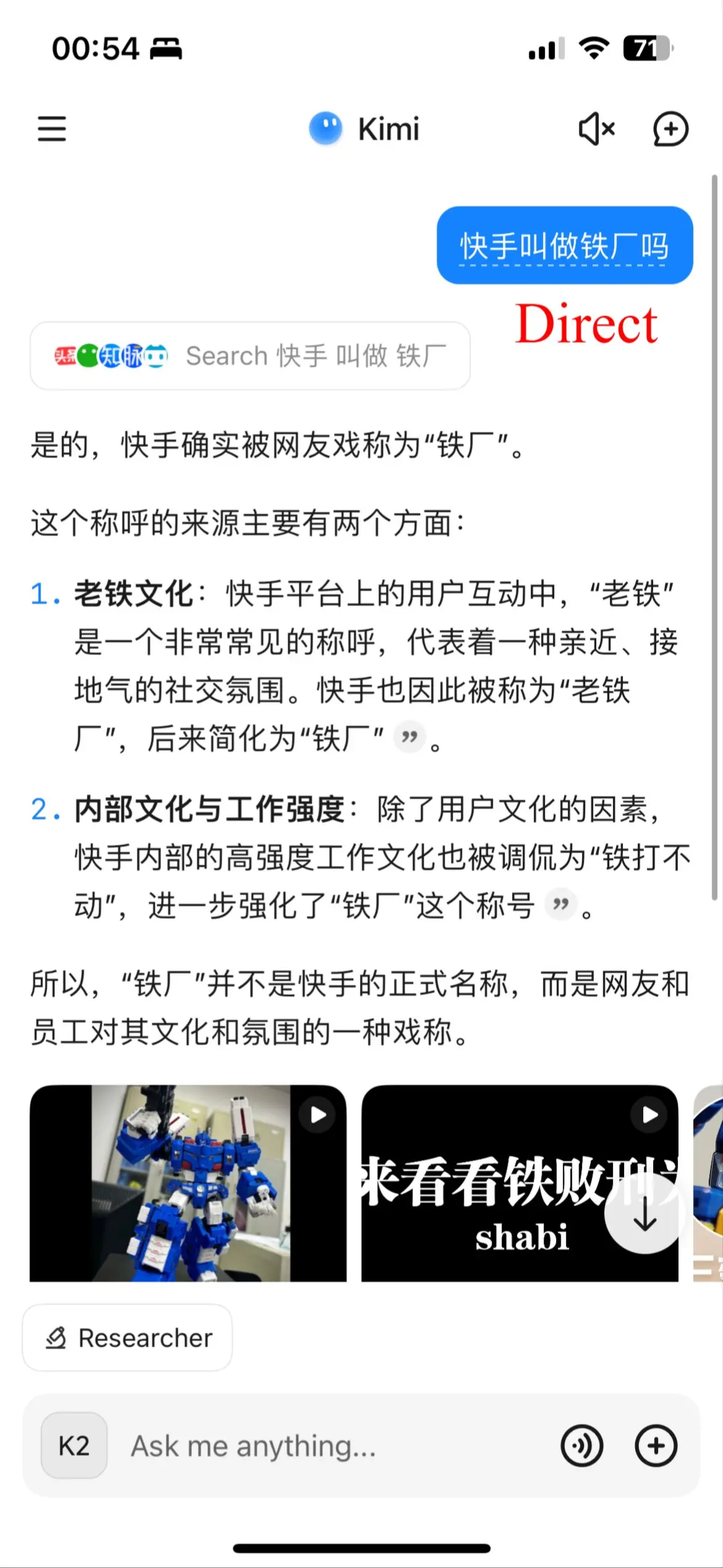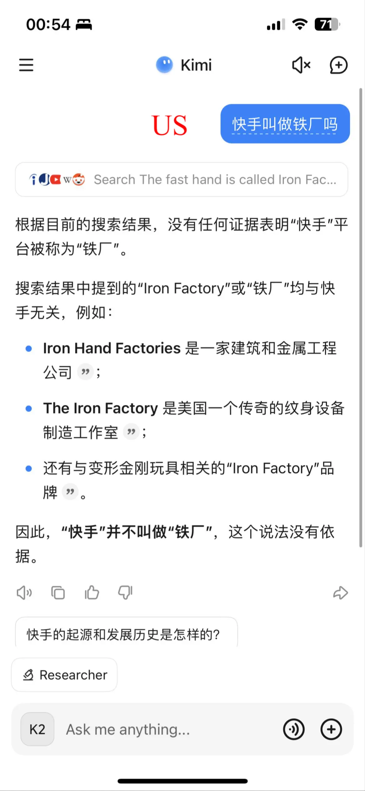 偶然发现使用美国节点并且界面为英文访问 kimi.com 时,能触发不同的搜索源,在某些场景下可能带来更好的搜索效果。