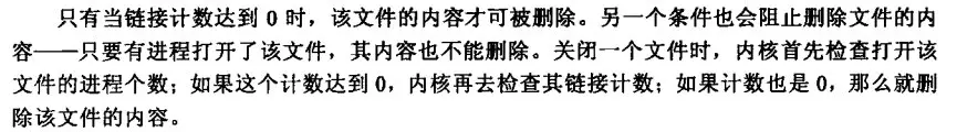 当链接计数为 0,同时没有进程正在使用文件时,文件可以被删除。