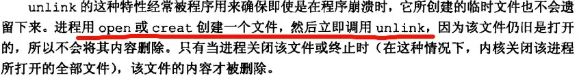 这两个函数用来删除文件。从名字可以看出,删除文件的本质是删除目录项,即链接数量减少 1。如果文件处在具有粘着位的目录中,则还受到粘着位规则规定的删除文件需要的权限限制。