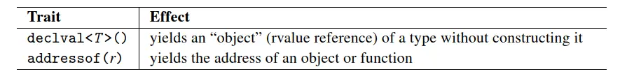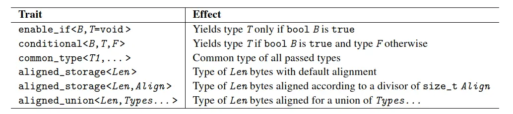 这一章介绍的大都是用来查询类型属性的 type traits。还有一些其他的工具。