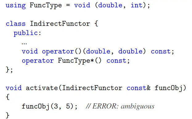 属性的 this 指针上调用,因而转换是可行的。由于需要额外的转换,所以第二个函数在参数 0 位置不如第一个函数匹配程度高(按照 IndirectFunctor