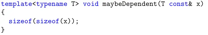 操作符要求参数为完整类型。如果实例化这里时 T 不是一个完整的类型,就无法通过编译。(这里不存在类型依赖,因为 sizeof