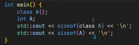 BTW,sizeof 优先找到变量名而不是类名: