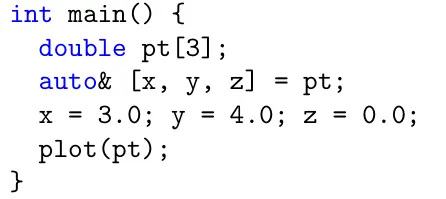 std::tuple t(4, 3, 2.5); // same as auto t = std::make_tuple(4, 3, 2.5);