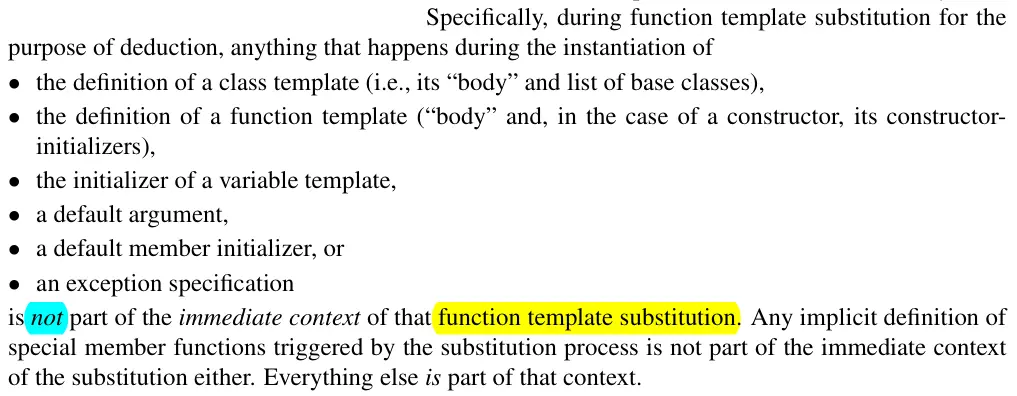 这样的非法类型,因而会出现编译错误。这种出错的情况好像无论是用 enable_if 还是用 concept 都无法回避。 用 type traits 和 concept 能够处理的只有对 current instantiation 的判断。