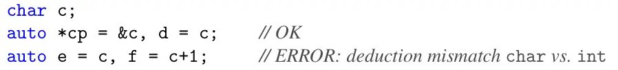 上面第三行推导失败,因为字符类型做算数运算会被整型提升,然后 e 和 f 的类型就不匹配了。