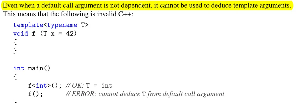 这样的指向成员的指针没有用到子类型,所以是推导上下文。 - 非类型模板参数的非平凡表达式不是推导上下文。比如模板