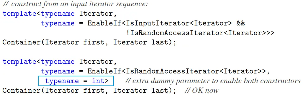 那样占用默认值结果导致函数模板重复定义的情况。见std enable_if