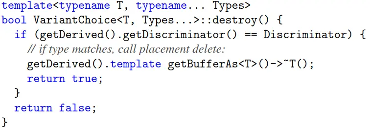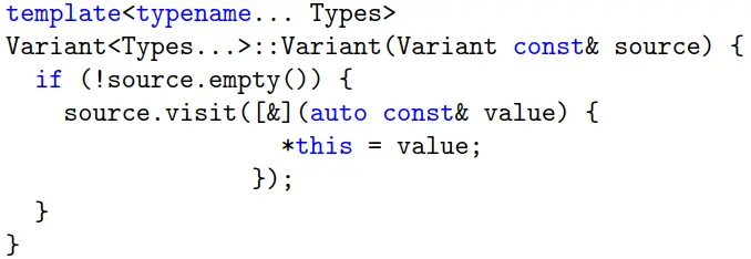 禁止激进优化)。 - 后者使用 CRTP 提供一堆构造、赋值函数(Variant 中需要用