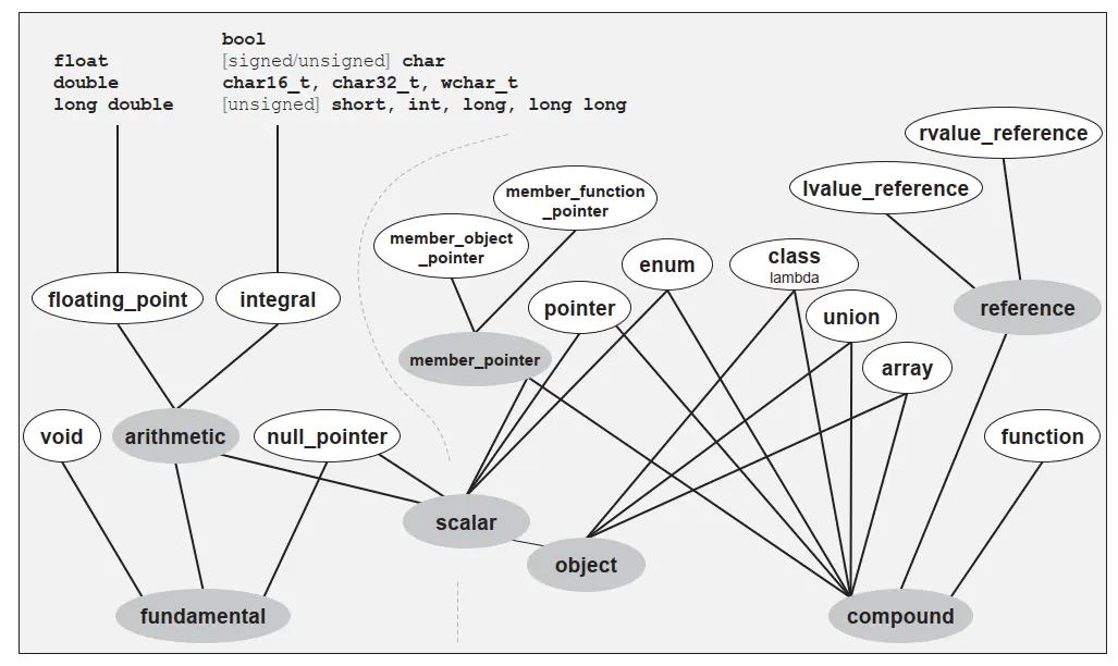 - 某类型 C 继承了一个大小为 N 的空基类组,那么它至少具有 N 个字节。如果这个类型 C 不是空类型,则还有对齐要求。