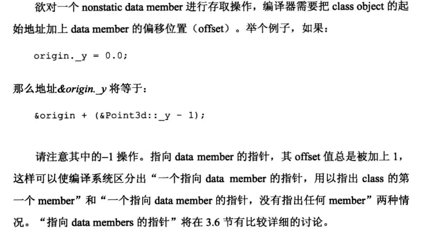 书中说空指针为 0,而其他数据成员的指针有 1 的偏移。而现在广泛使用的 Itanium C++ ABI 则是将这个结果减了 1,这有利于减少大部分场景下的成员访问开销。