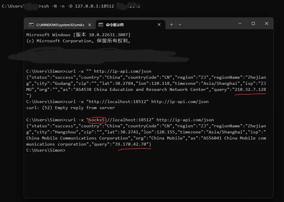 生成一个 socks 代理。如图,我创建代理之后,本地用这个代理去访问网站,实际上是远程服务器代我访问了网站。