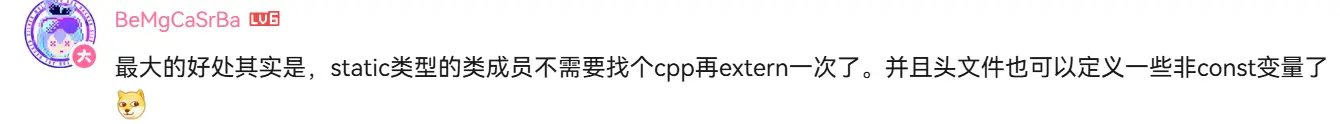 的全局变量(C++17 之后才能使用 inline variables)。对于函数来说作用不明显。B 站评论区 提醒了我。 - 对于 C++ 变量来说,extern inline 并不等于 inline: