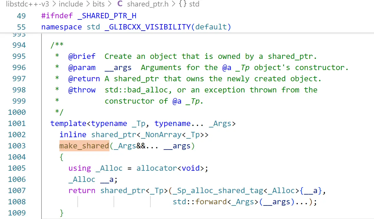 进行特殊判断吗?从 libstdc++ 源码来看是不会的,这个函数通过特殊的 tag 直接调用了一个私有的 shared_ptr