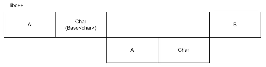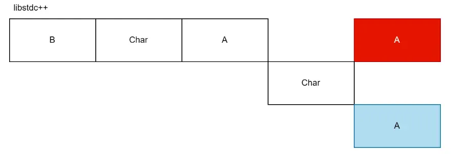 但是由于元组参数构造顺序不同,两种库实现占用的空间也可能不同。考虑类型 std::tuple<A, char, A, char, B>
