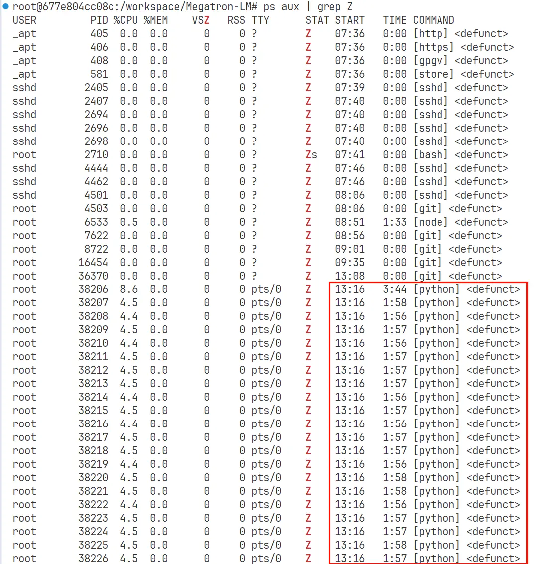我是遇到了这样一个问题: megatron-lm huggingface 教程运行时资源占用大、有僵尸(2025/4/22 文章还在修改中,尚未公开)。
