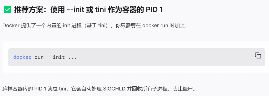 但是,我使用的是容器环境,它的 init 不具备处理 SIGCHLD 信号的功能!