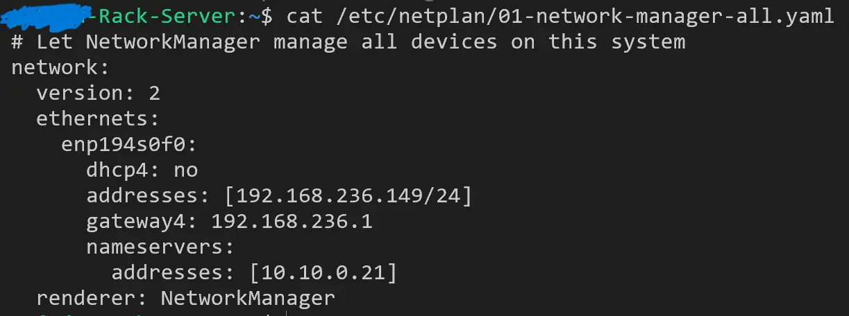 来重载。根据配置文件可知 netplan 使用 NetworkManager 来管理网络: