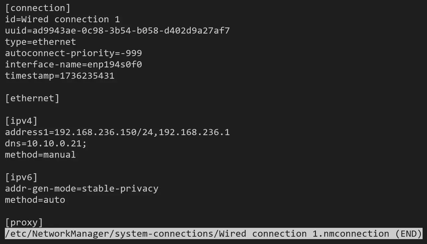 /etc/NetworkManager/system-connections/Wired connection 1.nmconnection:address1=192.168.236.150/24,192.168.236.1