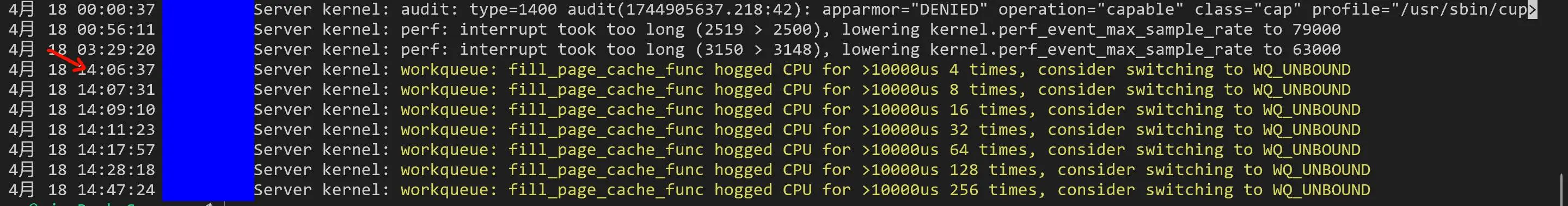 中也能看到不断获取 dhcp 地址的日志)却能正常运行,不知道是否是这个原因导致服务器异常。