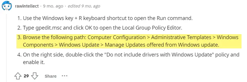 DWORD | ExcludeWUDriversInQualityUpdate |