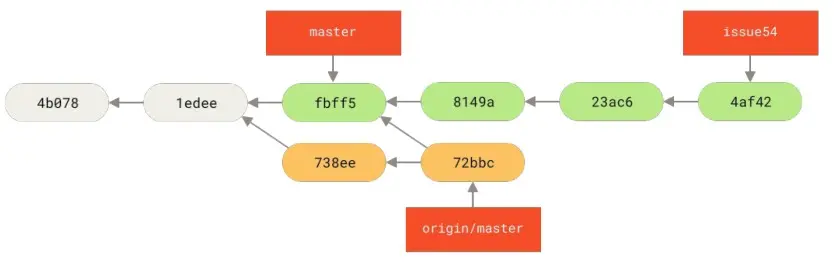 同样会在文件中留下 markers,解决冲突之后要用 git rebase –continue 而不是 git merge。