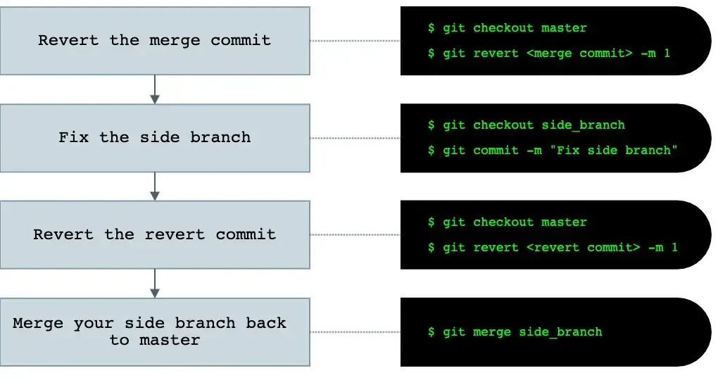改写历史之外,还可以用 git revert -m 1 HEAD