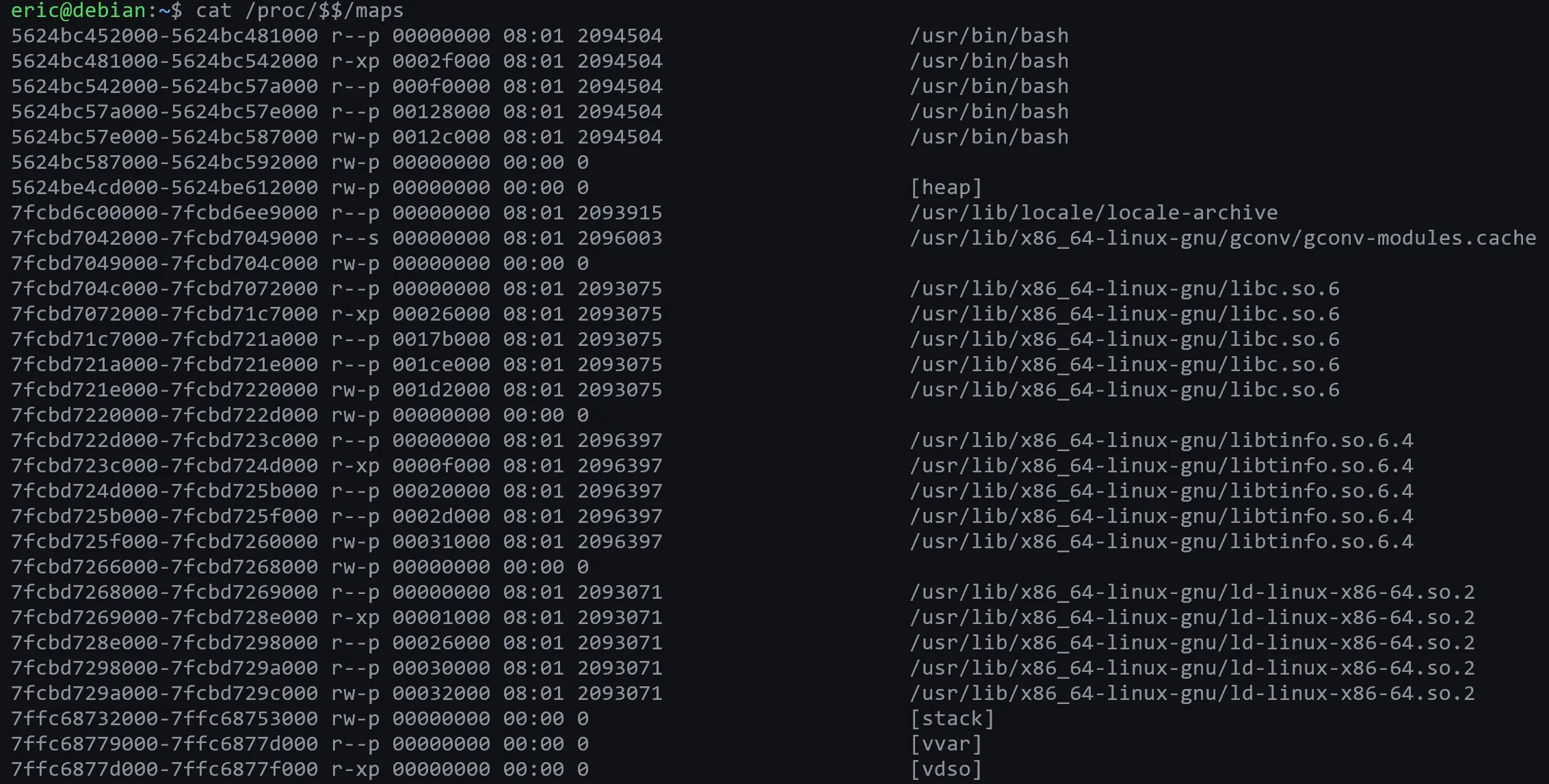 可以用 Linux 特有的 /proc 文件系统(/proc/PID/maps